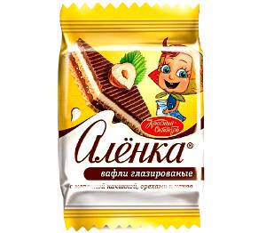 Шоколад "Аленка" с начинкой (1 шт), Молочный Шоколад "Аленка" (1 шт), Батончик  "Аленка" с начинкой (1 шт), Шоколадка "Аленка" (1 шт), Вафли в шоколаде (1 шт), Пралине с орехами в глазури (1 шт), Бисквитное пирожное (1 шт), Вафли с орехами и какао (1 шт), Печенье (1 шт), Конфеты  "Аленка" ваф. (1 шт), Конфеты "Аленка" крем-брюле (1 шт), Конфеты "Аленка" карамель (1 шт)